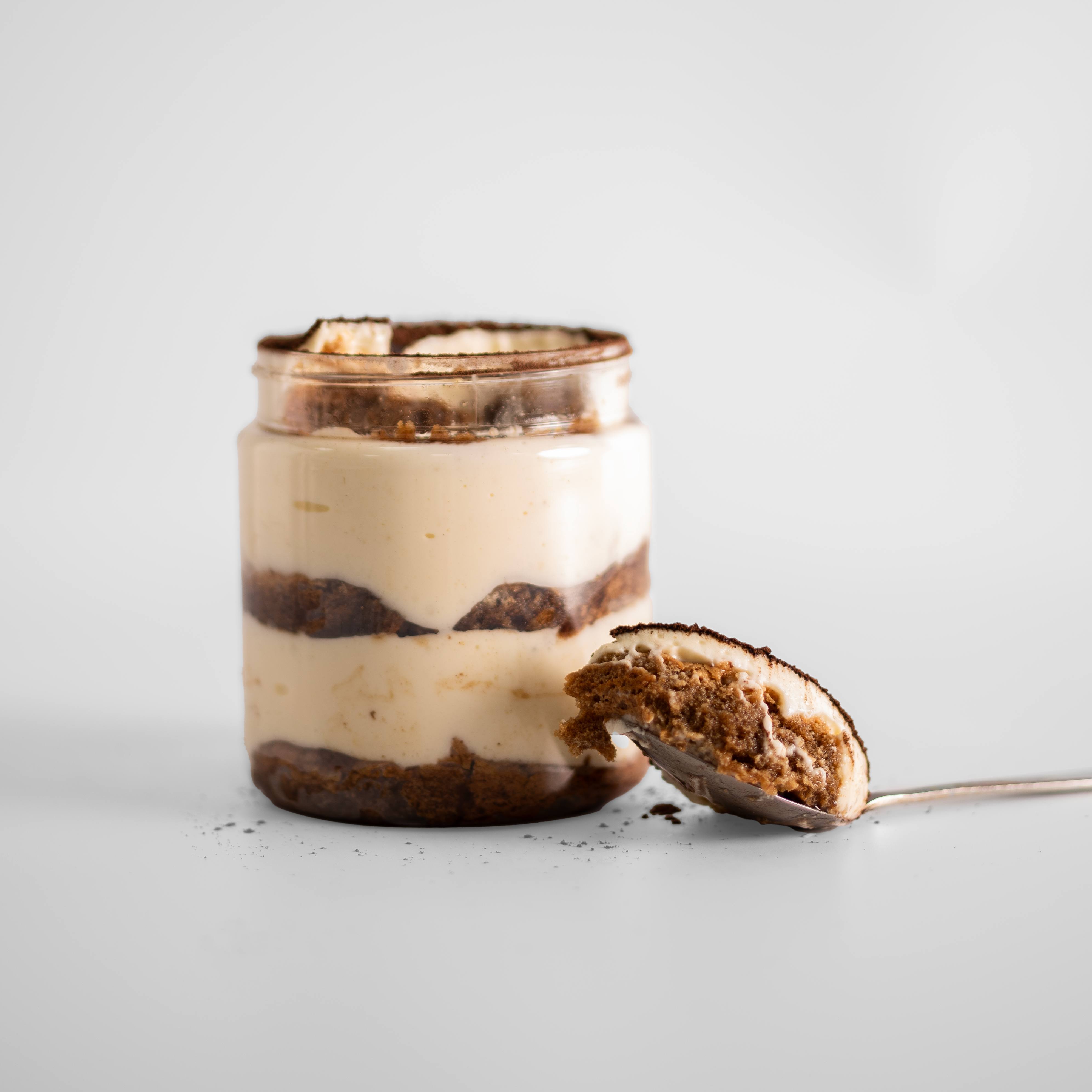 Our Tiramisu Jars are a delightful fusion of creaminess with a punch from the espresso, made with our house-made ladyfingers, all layered in a convenient jar for easy enjoyment.